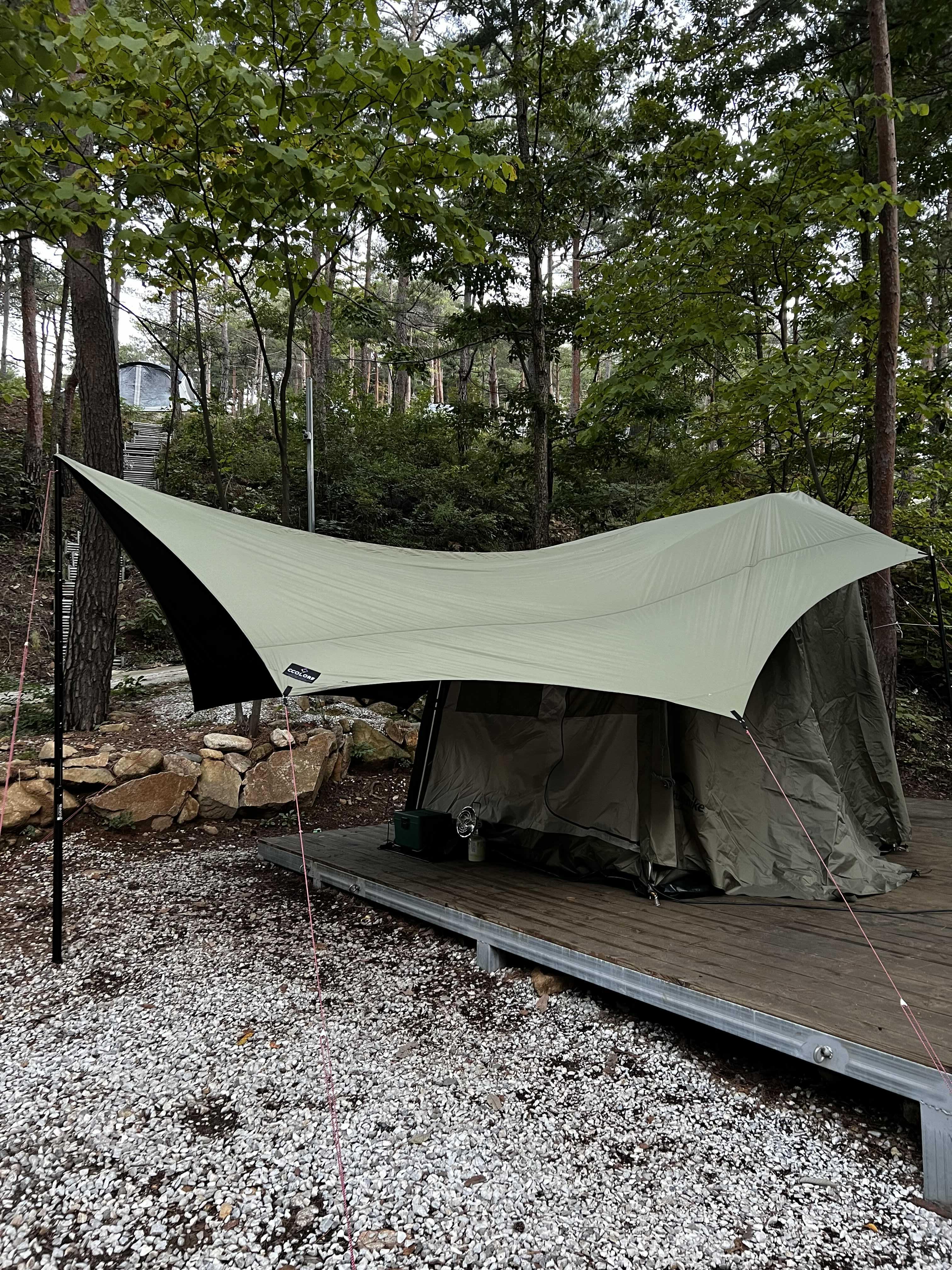 주변 감상 10초 후 새장비 타프와 텐트 치다가 해지고 난리